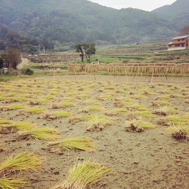 一枚刈り終わった!人海戦術の素晴らしさ…!これを縛ってはざにかけるっ!